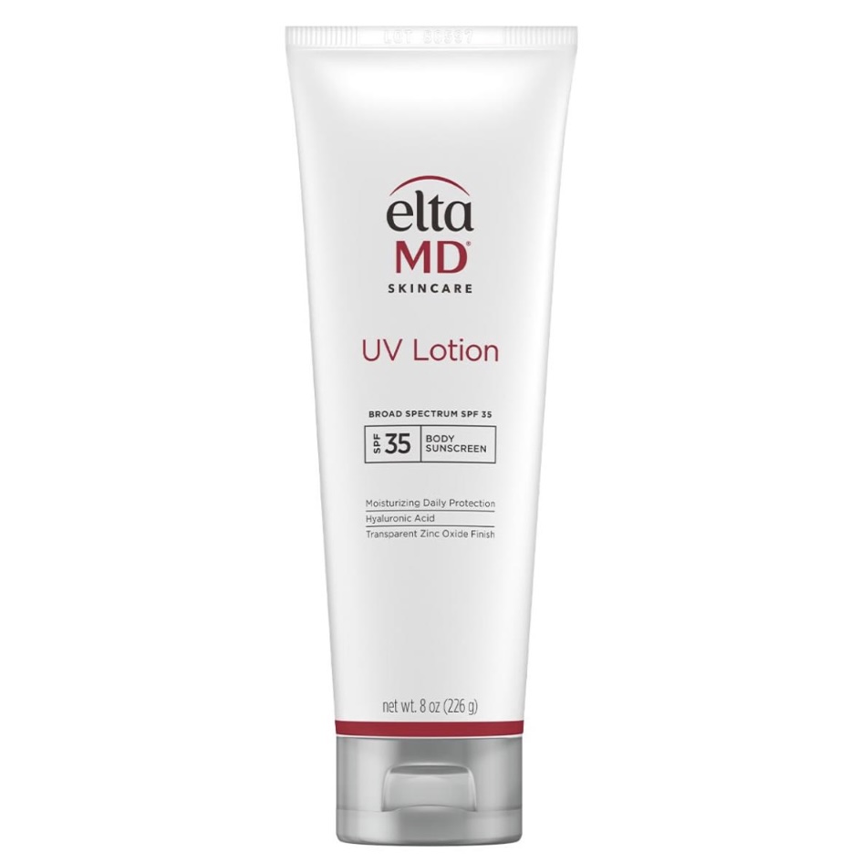 EltaMD UV Lotion Broad-Spectrum SPF 35 is a moisturizing sunscreen for the entire body. Use it every day to guard against sun damage and keep skin hydrated. EltaMD UV Lotion is formulated with transparent zinc oxide to protect skin from UVA (aging) and UVB (burning)